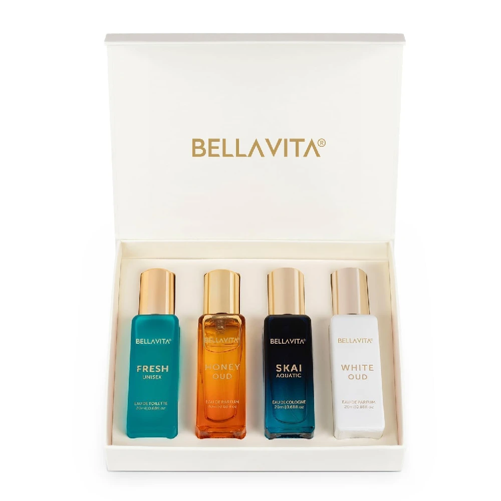 Experience luxury with the Bellavita Set of 4. Featuring iconic, long-lasting scents, this collection is perfect for gifting or discovering your signature fragrance. Elevate your everyday style with these sophisticated, premium blends.